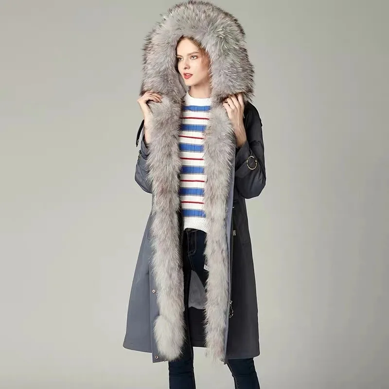 Product Name: Party Überwindung Frauen 2019 Neue Frauen Kaninchen Bündeln Groß Skorpion Pelz Kragen Medium Lange Mantel Jacke