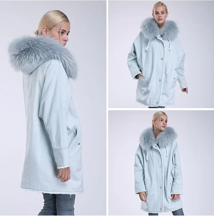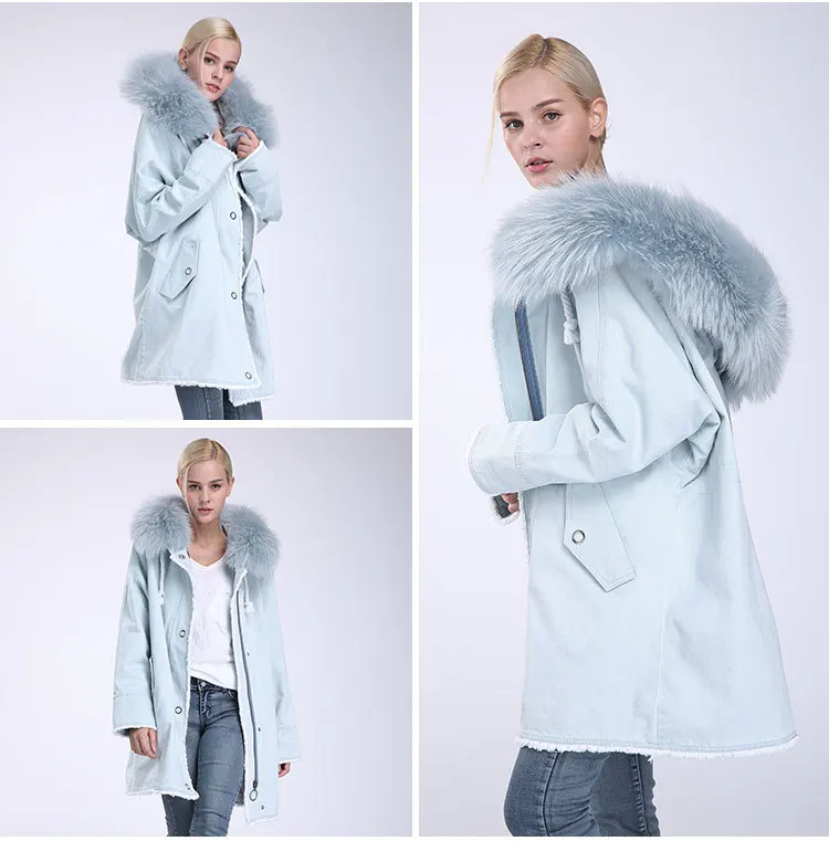 Special Offer 2019 Neue Mode WaschbÀr Hund Kragen Rex Kaninchen Pelz Abnehmbare Denim Jacke Winter Warme Mantel Mode Frau Mantel Discount 69% Today!