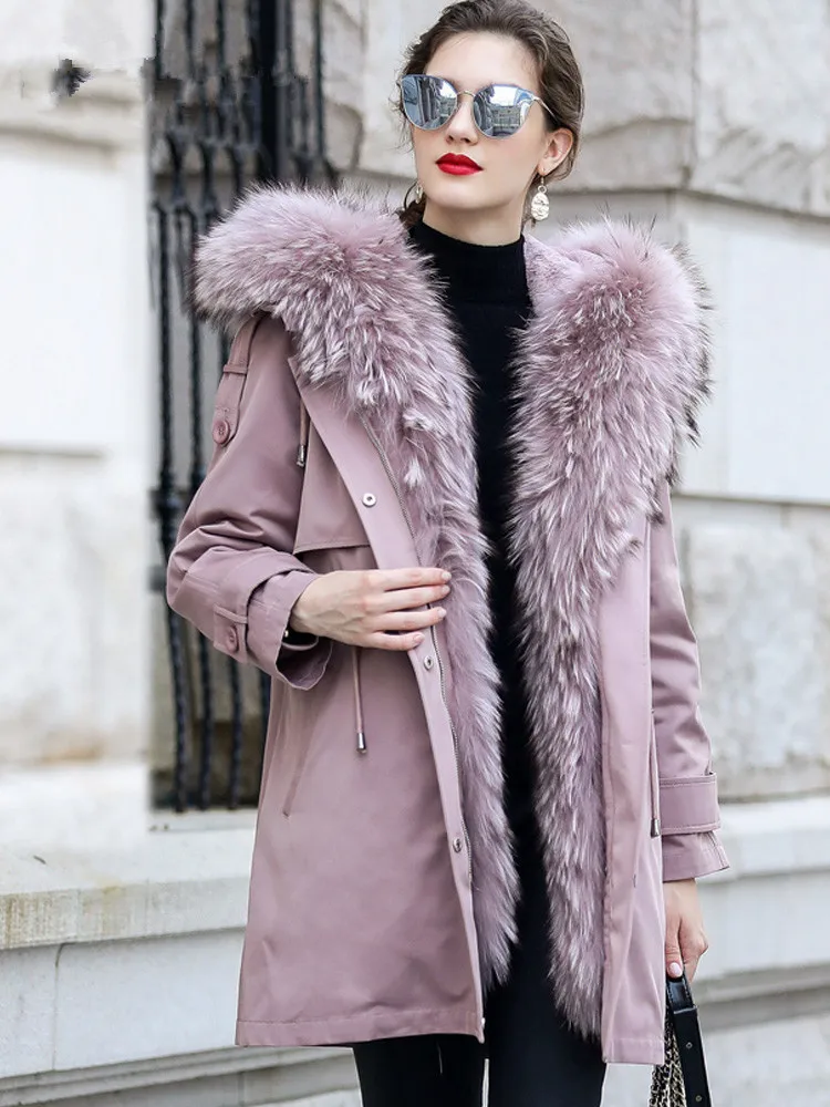 Product Name: Rabbit Women's Real Liner Parka Winter Coat Women Raccoon Fur Collar Korean Long Jackets Chaqueta Mujer MY