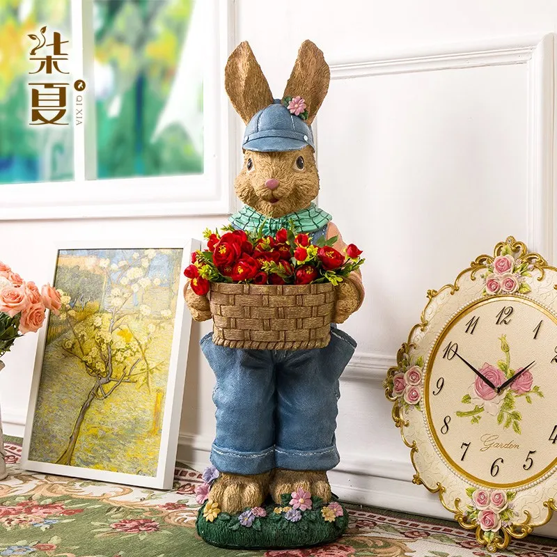 Special Offer Große Harz Nette Glückliche Kaninchen Figurine Vintage Wohnkultur Handwerk Dekoration Objekte Garten Kaninchen Blumentopf Harz Tier Statue Discount 0% Today!
