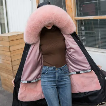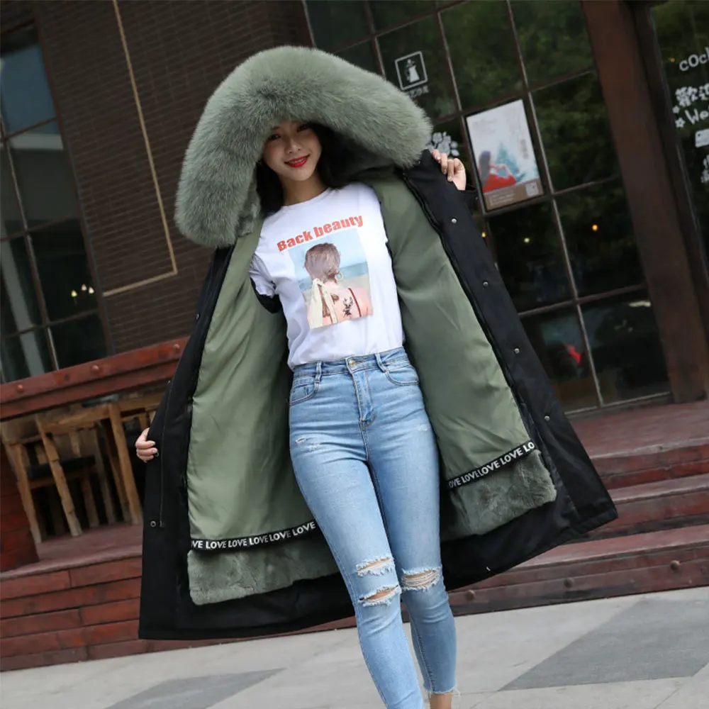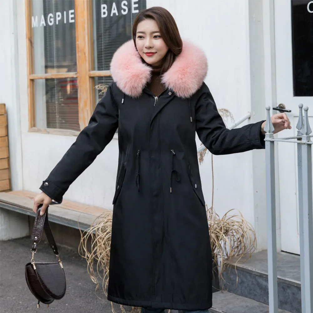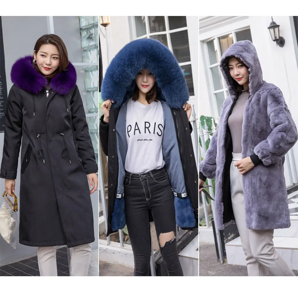 Product Name: Parka Echt Kaninchen Pelz Futter Mantel Frauen Winter Mit Kapuze Jacke Luxus Natürlichen Fuchs Pelz Kragen Lange Oberbekleidung Dicke Warme Streetwear