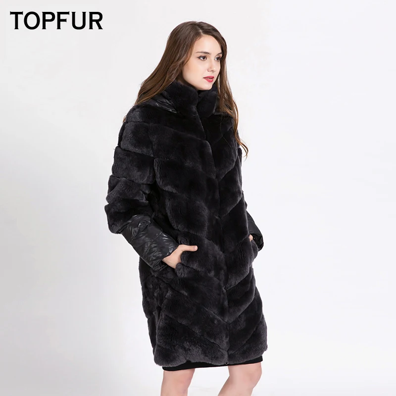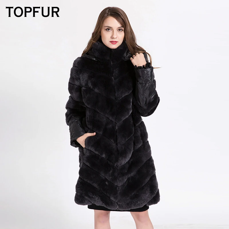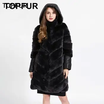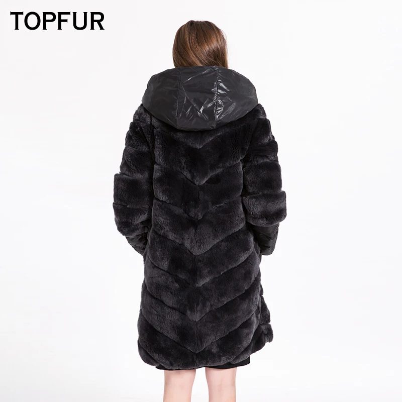 Special Offer TOPFUR Neue Ankunft Top Qualität Natürliche Rex Kaninchen Pelzmantel Frauen Mit Tuch Haube Ein Stück Echte Rex Kaninchen Pelz Outwear 1622 Discount 23% Today!