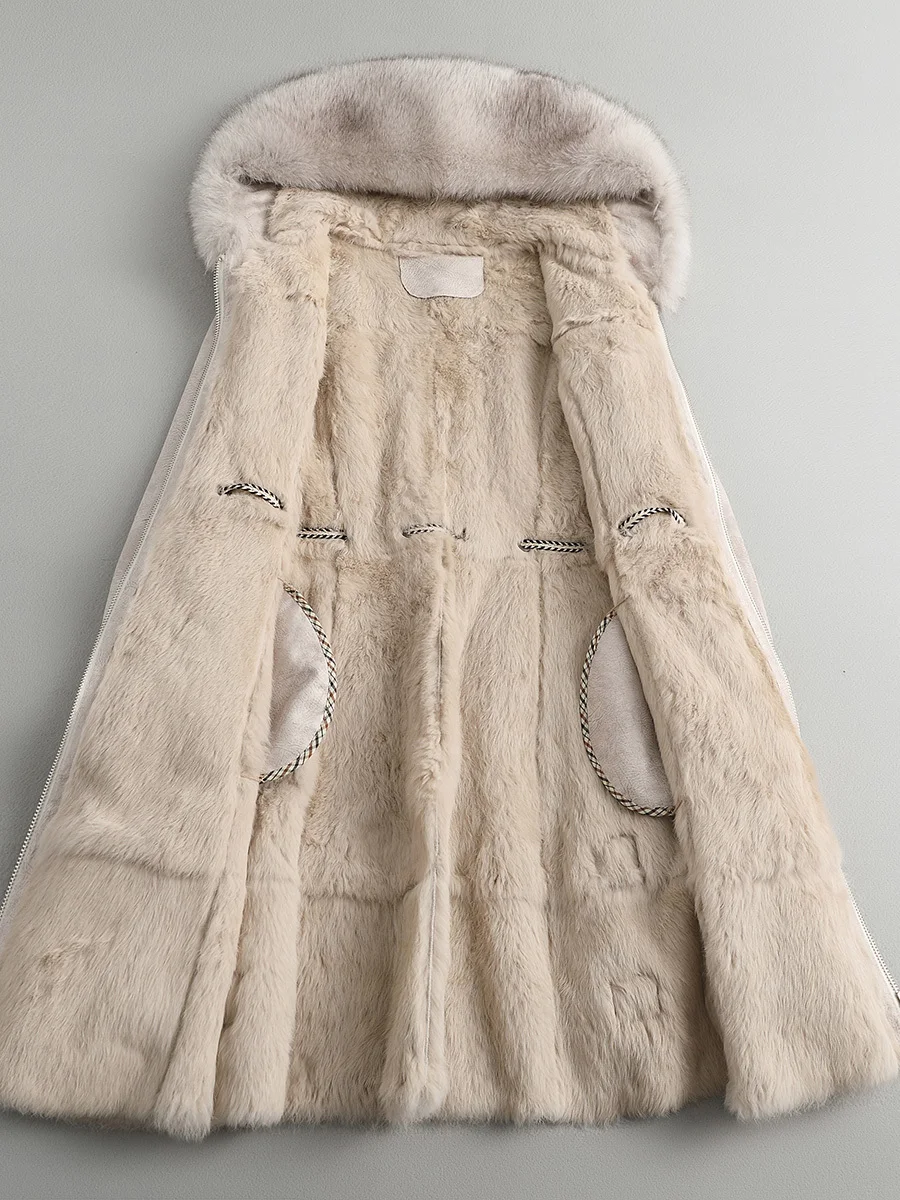 Product Name: Kaninchen Natürliche Pelzmantel Weibliche Vintage Lange Echt Fuchs Pelz Mit Kapuze Lammfell Jacke Frauen Koreanische Doppel Konfrontiert Pelz Tops Hiver 08004