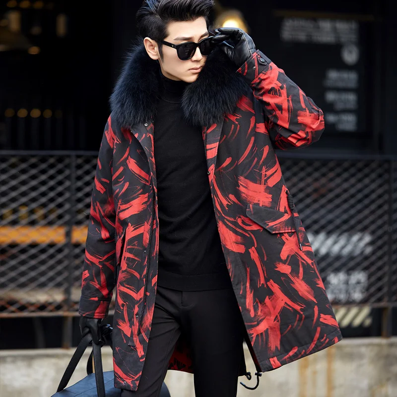 Product Name: Echt Parka ERKEK Männer Der Mantel Parkas Winter Waschbären Neck Mantel Mit Kaninchen Futter