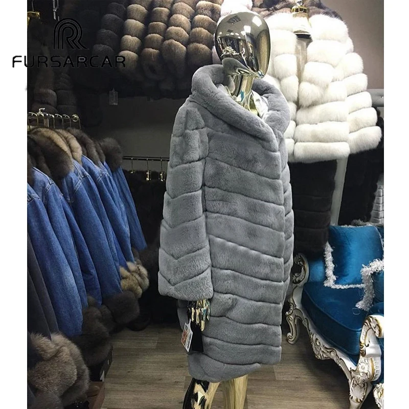 Special Offer FURSARCAR Frauen Echt Rex Kaninchen Pelz Mantel 100 CM Lange Winter Echtpelz Jacke Mit Fell Kapuze Starke Warme Weibliche Kaninchen Fell Oberbekleidung Discount 31% Today!