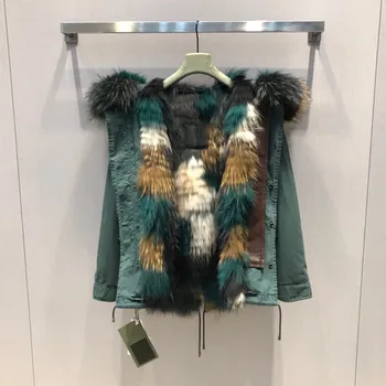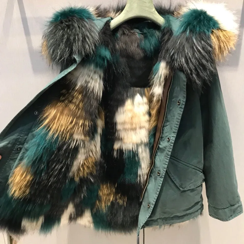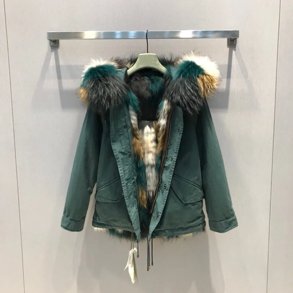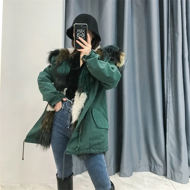 Product Name: Winter Parka Mode Frauen Fuchs Pelz Futter Mäntel Echten Fuchs Pelz Kragen Jacke Luxus Rex Kaninchen Pelz Futter Outwear