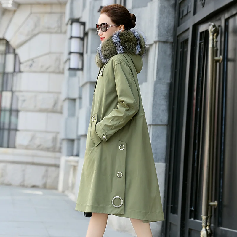 Product Name: AYUNSUE 2020 Echten Pelzmantel Weibliche Natürliche Kaninchen Pelz Liner Parka Winter Jacke Frauen Fuchs Waschbären Pelz Kragen Lange Jacken MY3890