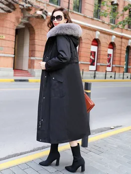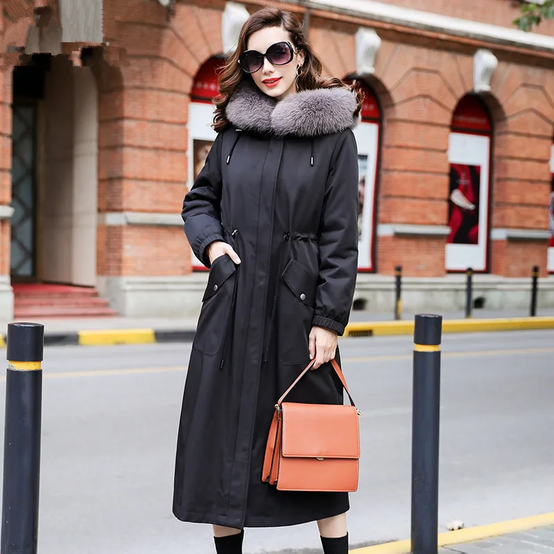 Product Name: Echt Mantel Weibliche Kaninchen Parka 2020 Winter Jacke Fuchs Pelz Kragen Lange Jacken Für Frauen Plus Größe MY3870