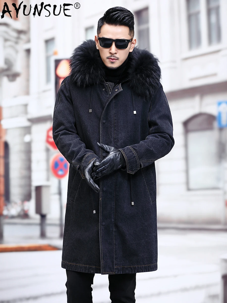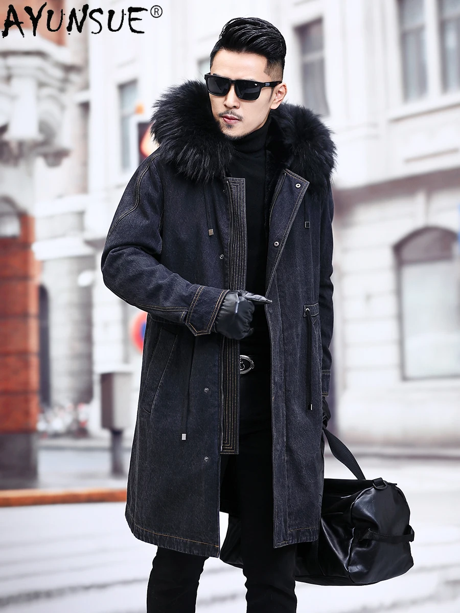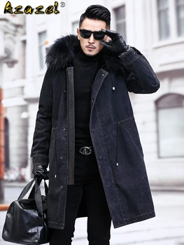 Special Offer Azazel Jean Jacke Winter Männer Kleidung Mit Kapuze Echt Kaninchen Pelz Mantel Männliche Mit Kapuze Parkas Luxus Herren Kleidung Ropa Hombre LXR492 Discount 90% Today!