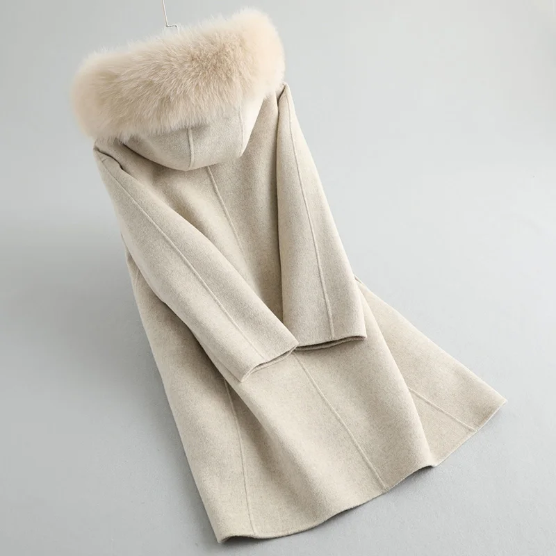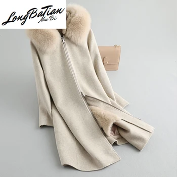 Product Name: Frauen Winter Jacke Echt Weibliche Luxus Kaninchen Liner 100% Wolle Mantel Fuchs Pelz Kragen Warme Lange Jacken MY4392