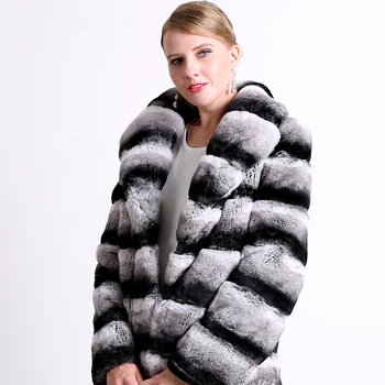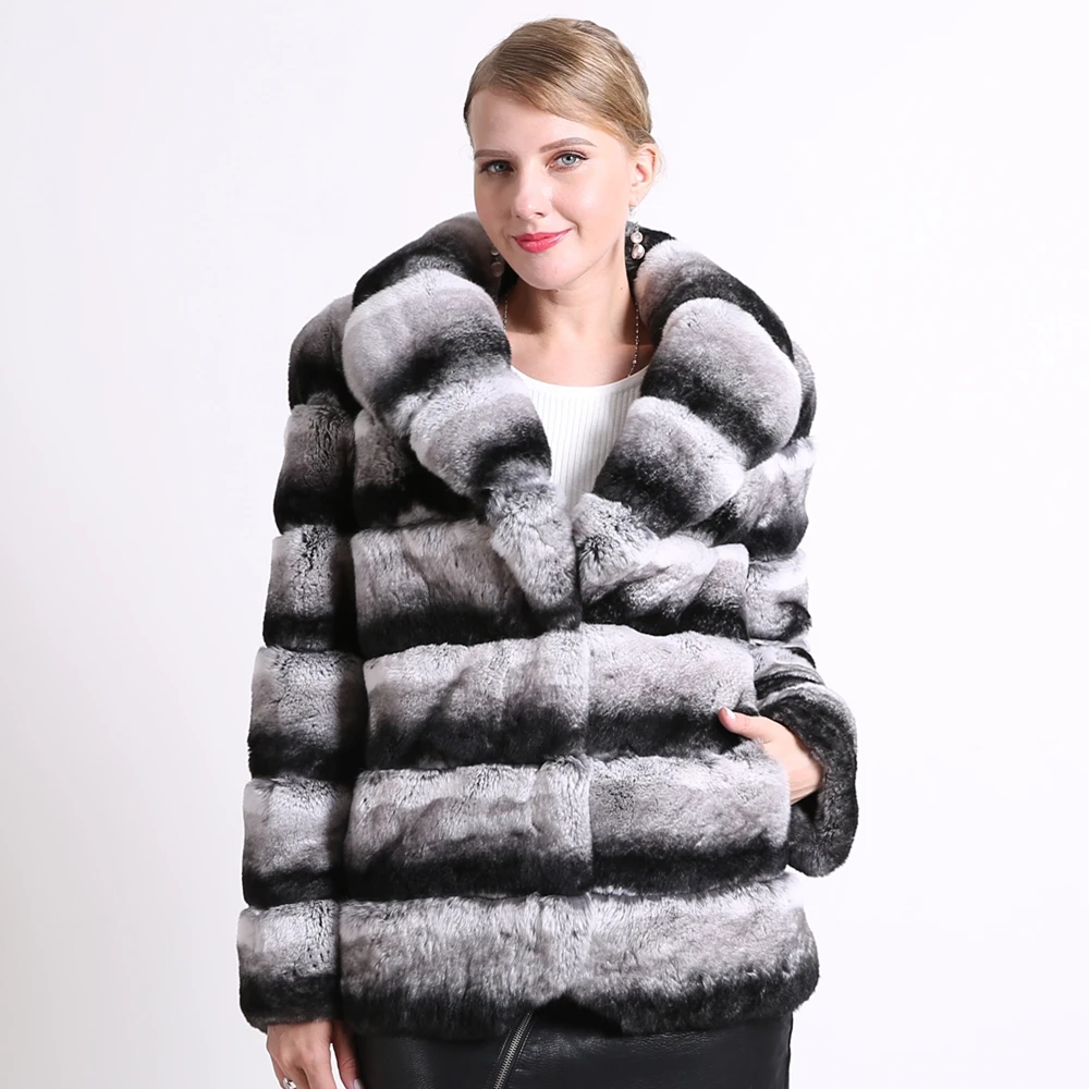 Product Name: 2018 Rushed 2018new Verkauf Frauen Reale Natürliche Rex Kaninchen Pelzmantel Hohe Qualität 100% Genuine Chinchilla Farbe Winter Jacke 70 Cm