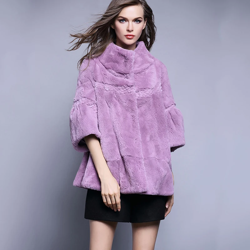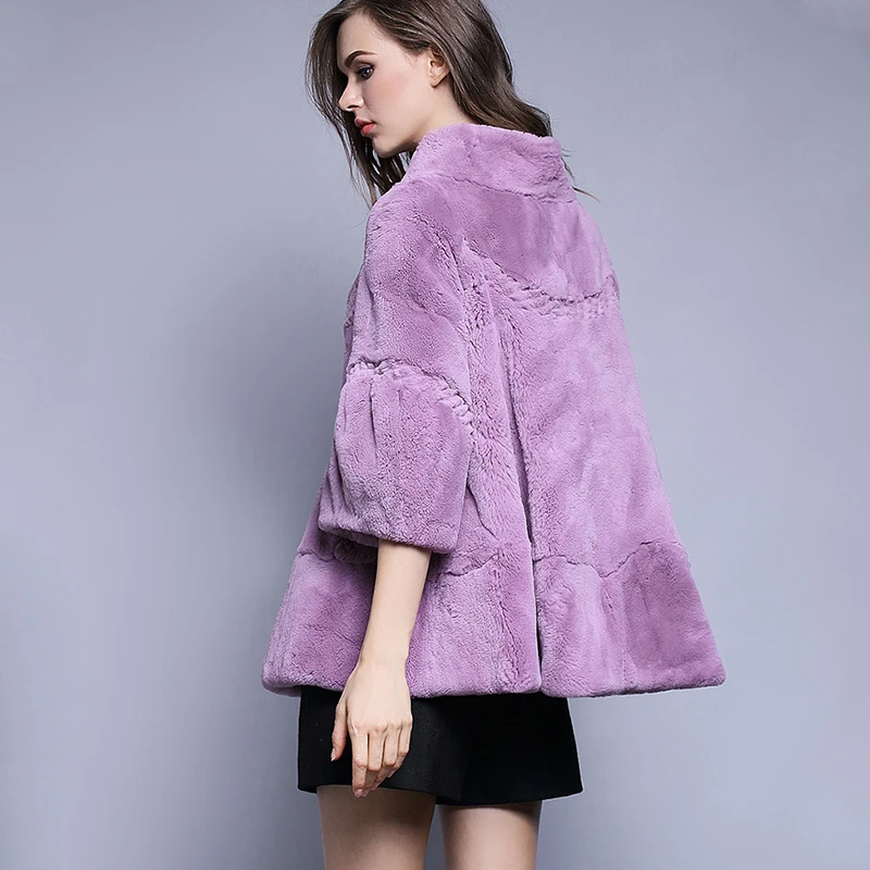 Product Name: LVCHI Winter2017 Reale Natürliche Rex Kaninchen Pelzmantel Frauen O-ansatz Drei Viertel Medium Kausalen Büro Dame Schlank Drapierte Warme Mäntel