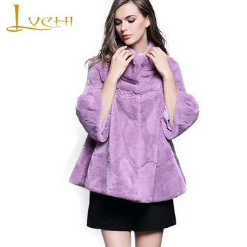 Special Offer LVCHI Winter2017 Reale Natürliche Rex Kaninchen Pelzmantel Frauen O-ansatz Drei Viertel Medium Kausalen Büro Dame Schlank Drapierte Warme Mäntel Discount 0% Today!
