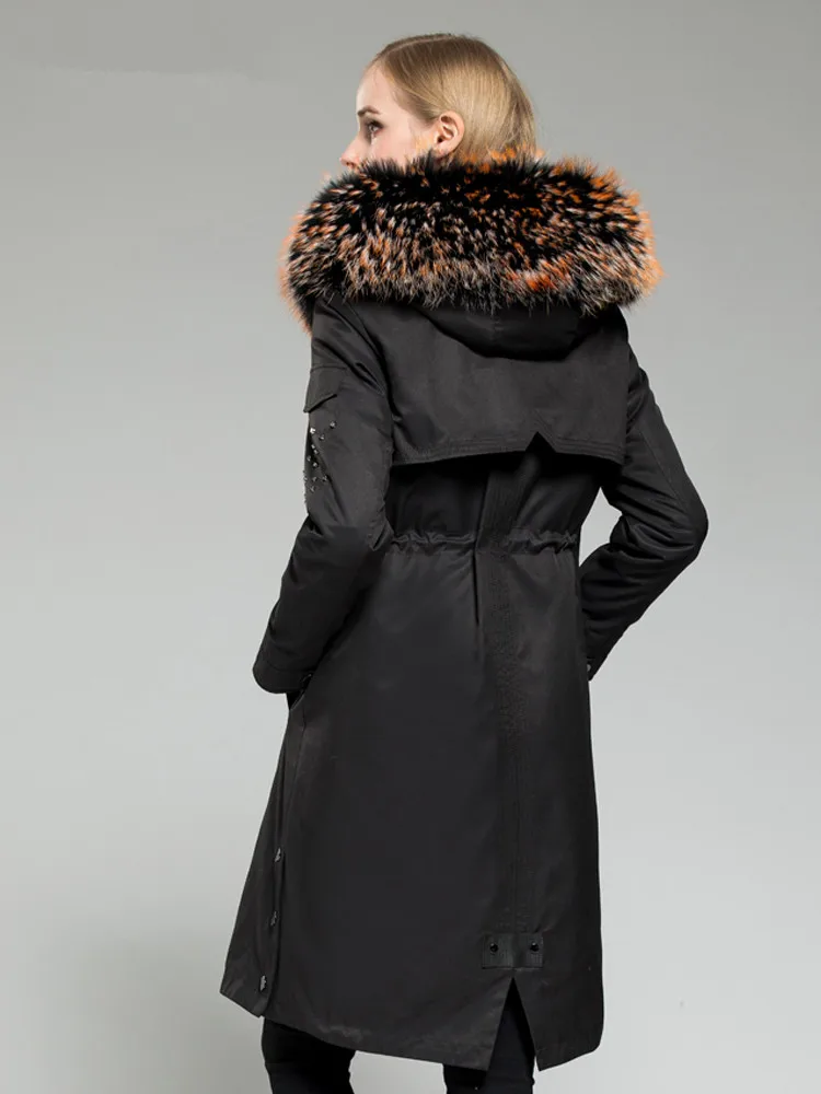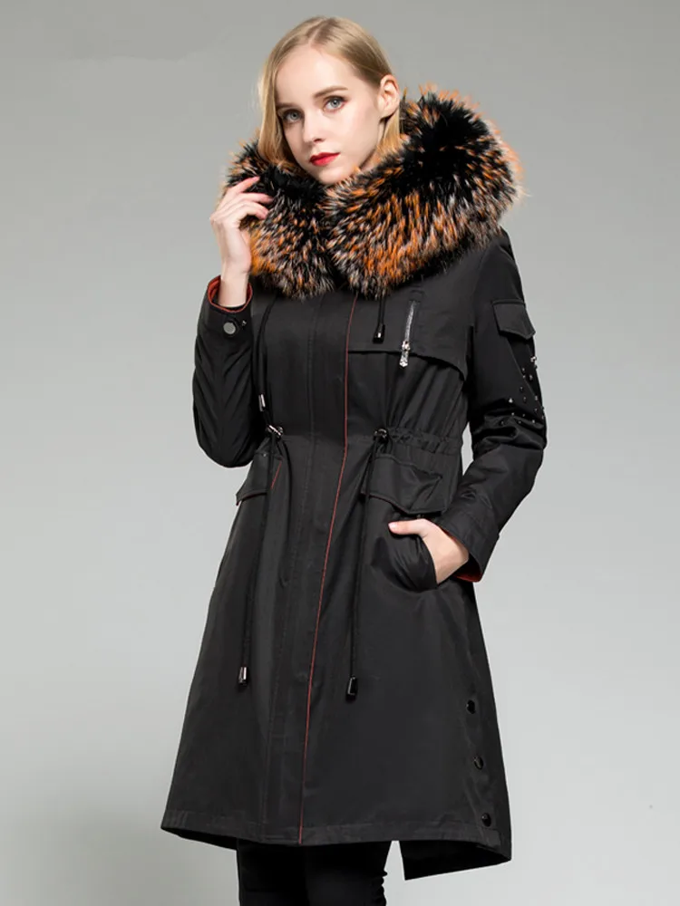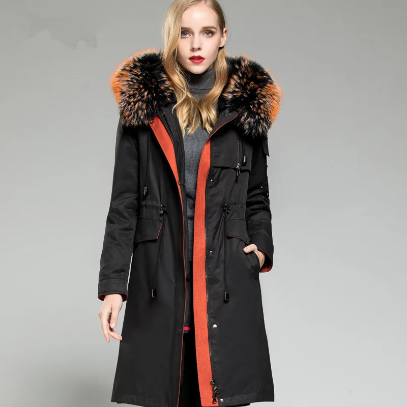 Product Name: Winter Echt Parka Weibliche Kaninchen Liner Warme Jacke Frauen WaschbÀren Pelz Kragen Langen Mantel MY4379