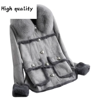 Special Offer Reale Natürliche Weibliche Kaninchen Mantel Winter Frauen Fuchs Pelz Kragen Faux Leder Jacke Manteau Femme MY4721 Discount 30% Today!