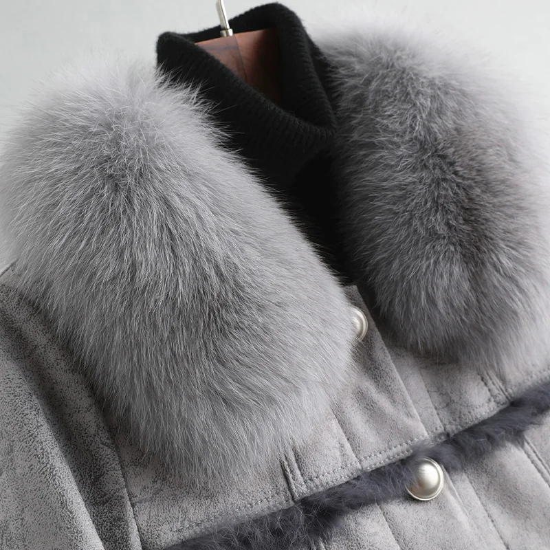 Product Name: Reale Natürliche Weibliche Kaninchen Mantel Winter Frauen Fuchs Pelz Kragen Faux Leder Jacke Manteau Femme MY4721