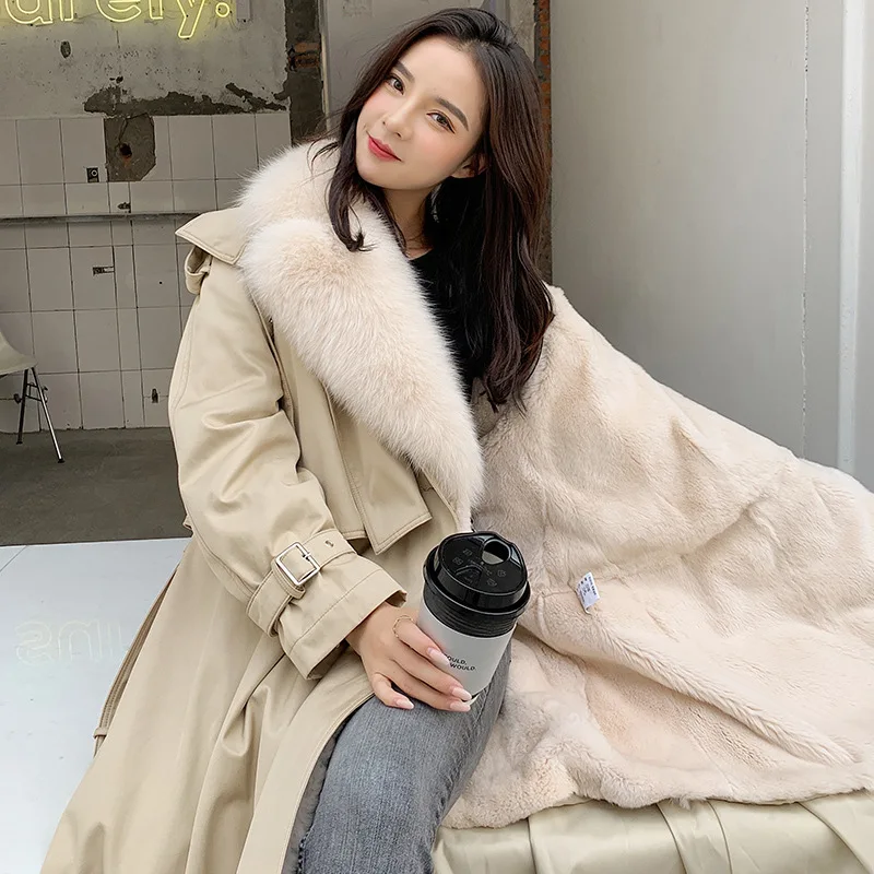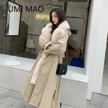 Product Name: UMI MAO Winter Warme Parkas Frauen Große Echt Fox Pelz Kragen Feminino Jacke Beiläufige Lose Outwear Natürliche Pelz Kragen Mantel