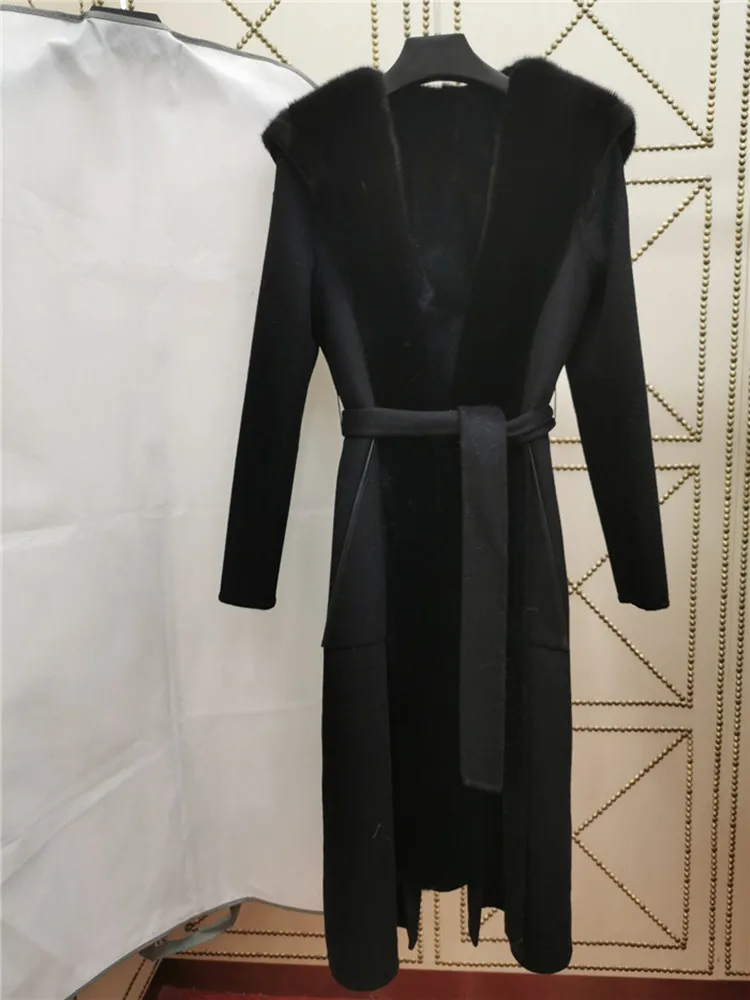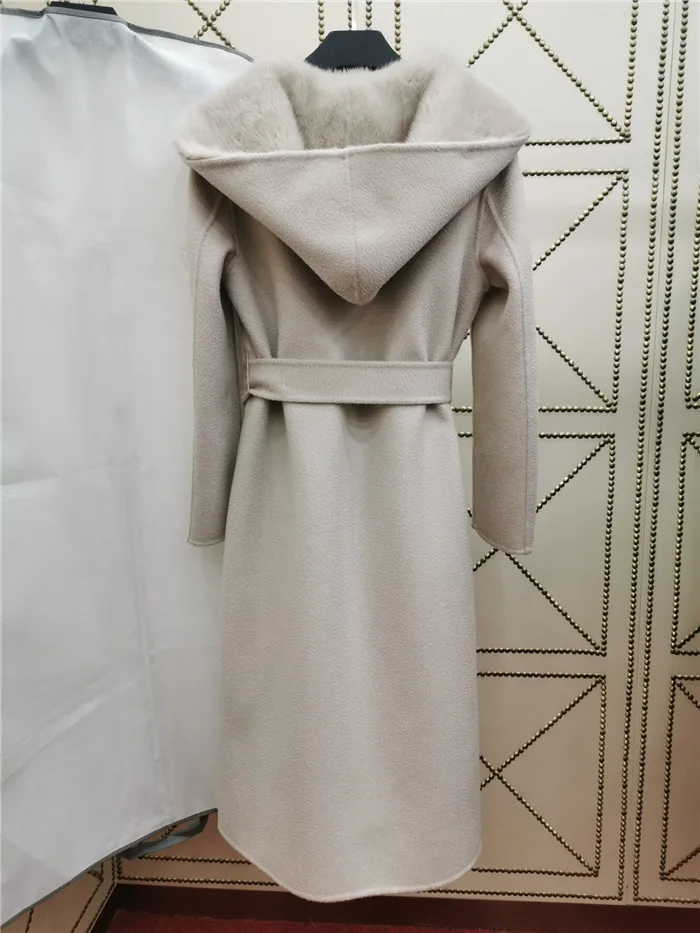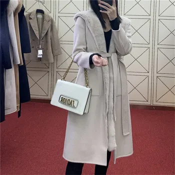 Product Name: Starke Natürliche Kaninchen Pelz Gefüttert Mäntel Für Frauen Real Nerz Kragen Lange Warme Winter Wolle Mantel Frauen Plus Größe