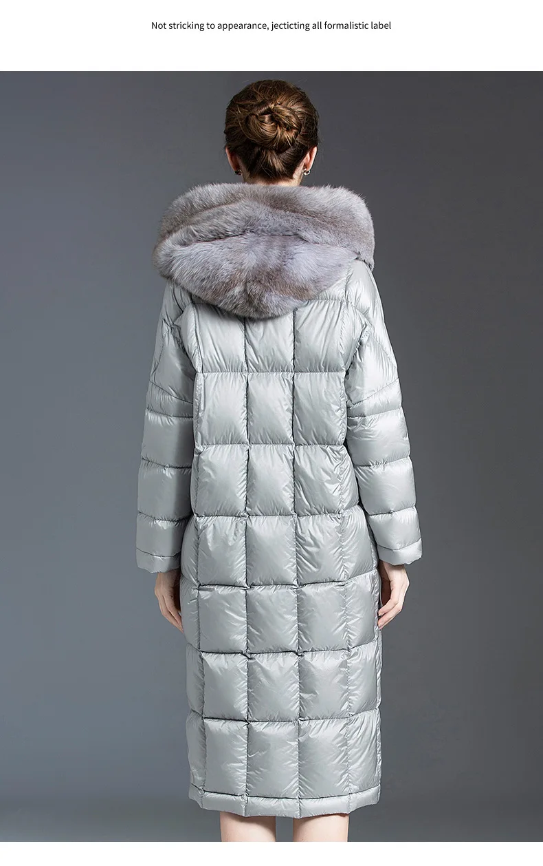 Product Name: 2020 Winter Neue Mantel Weiße Ente Unten Mit Kapuze Unten Jacke Kaninchen Pelz Kragen Mit Kapuze Unten Jacken Frauen Mid-länge Dicken Mantel