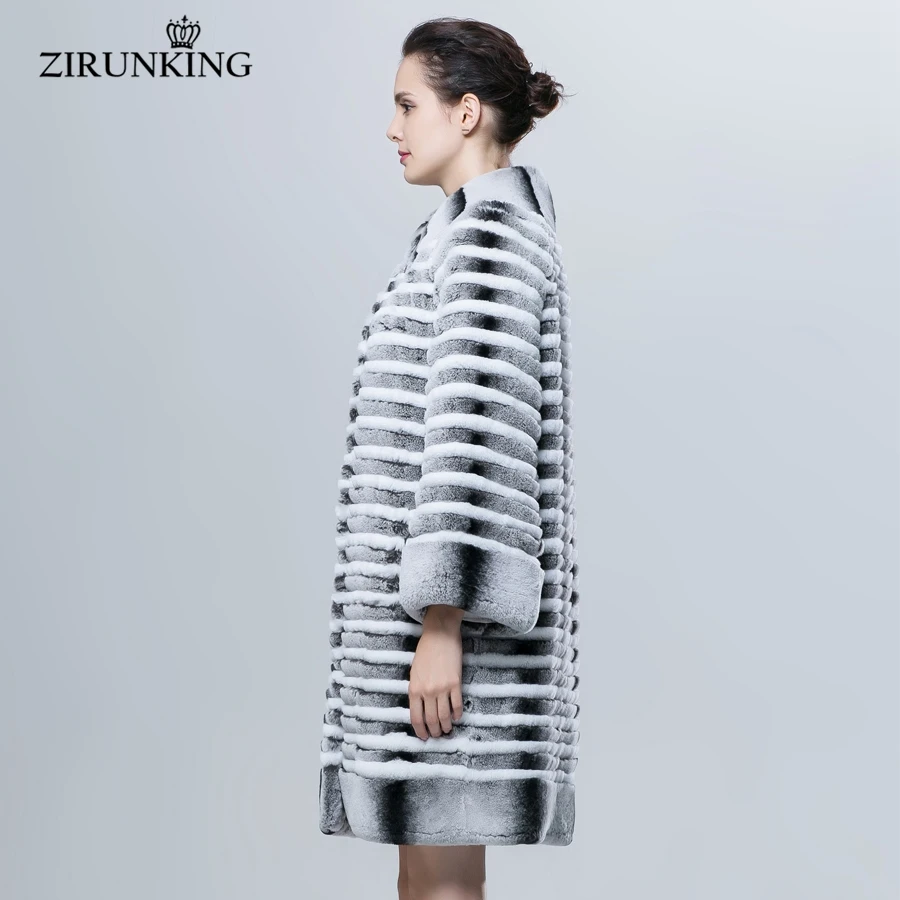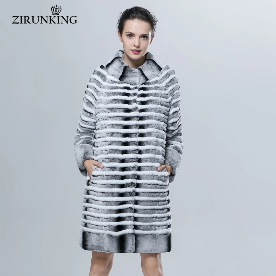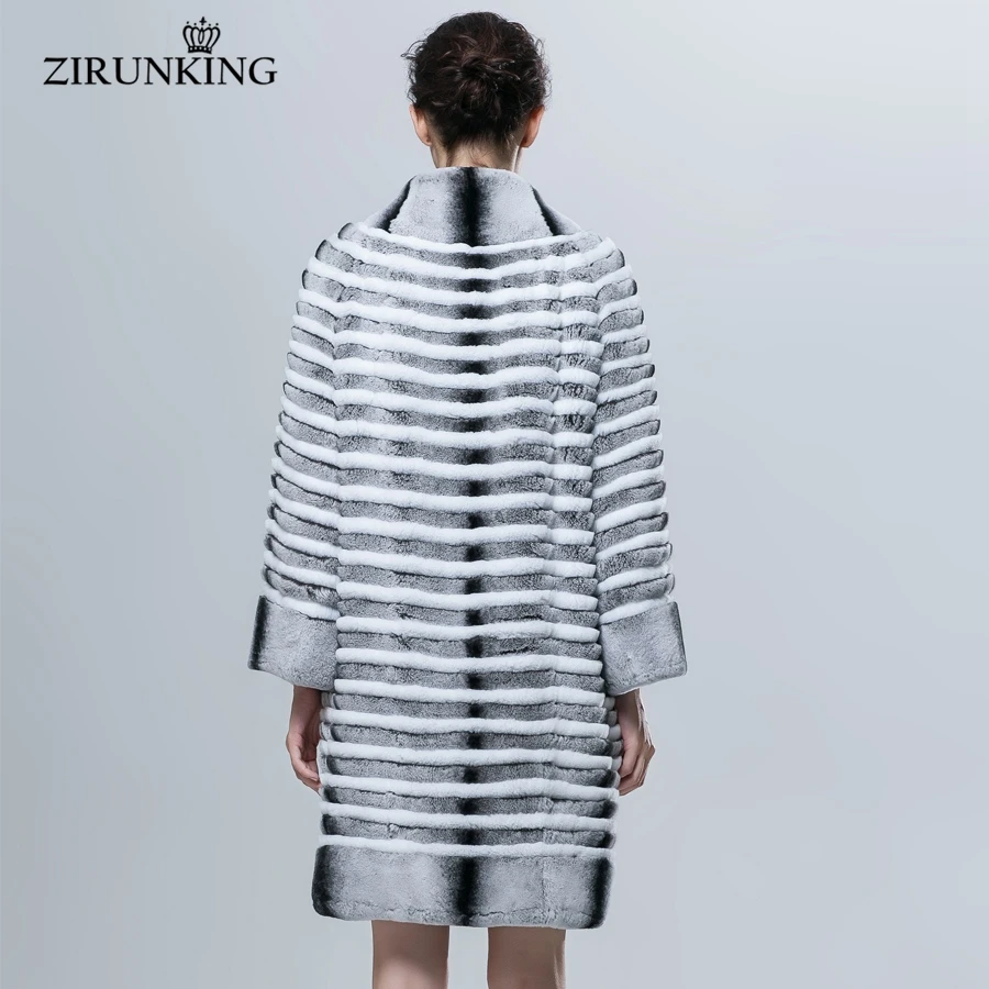 Special Offer ZIRUNKING Natürliche Echt Rex Kaninchen Fell Mantel Mit Linning Medium Warme Weibliche Gestrickte Streifen Dame Luxuriöse Frauen Pelzmantel ZC219K Discount 50% Today!