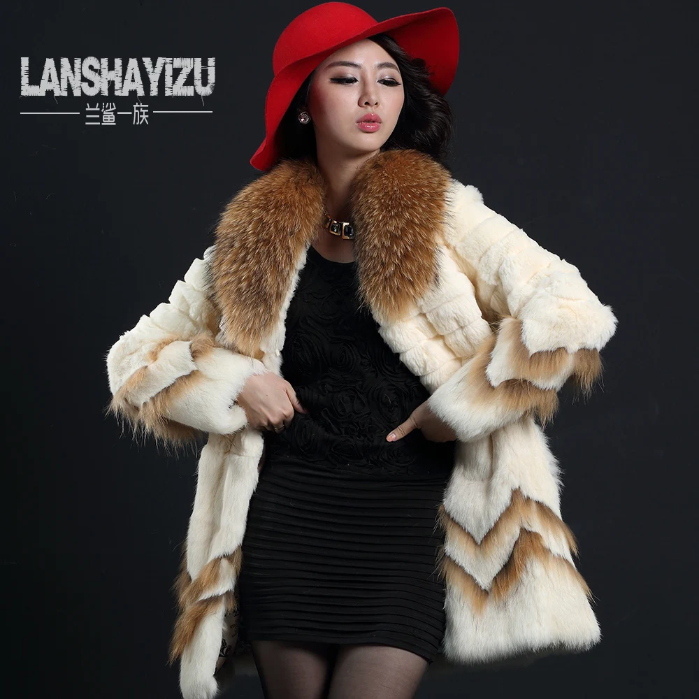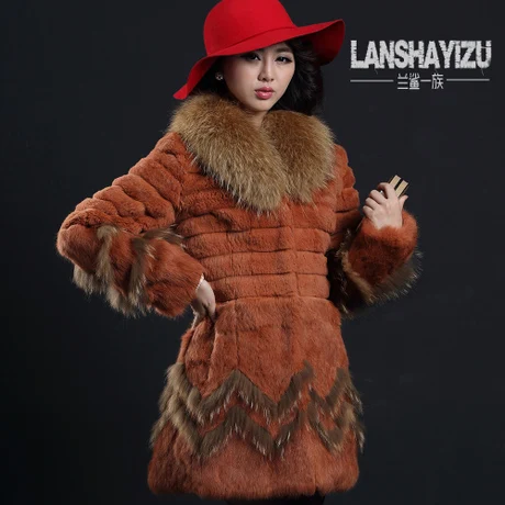 Special Offer 2017 Herbst Winter Frauen Echte Echtem Kaninchen Fell Mantel WaschbĂ€ren Pelz Kragen Weibliche Medium-lange Oberbekleidung Bekleidungs Plus GröĂe 0047 Discount 54% Today!
