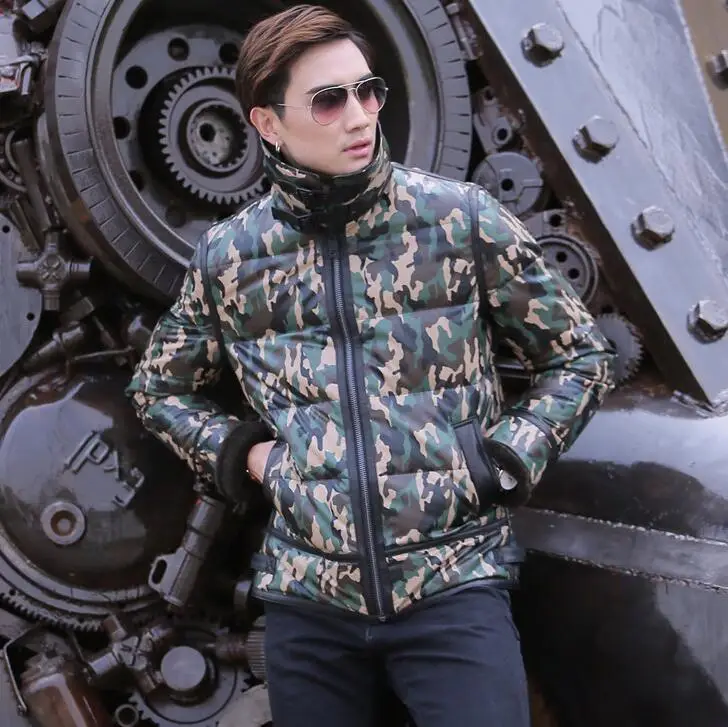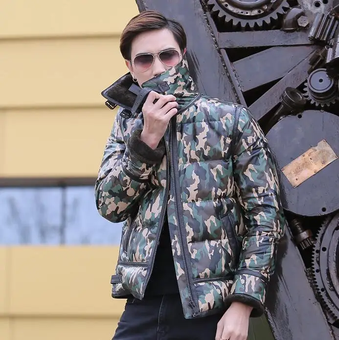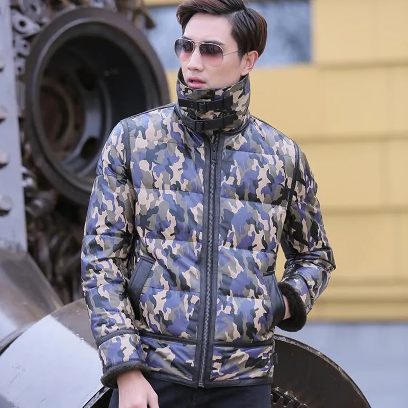 Product Name: Echtem Leder Jacke Mantel MĂ€nner Casual Echt Schaffell Kaninchen Fell Kragen Camouflage Winter Warm Dicken Bomber MĂ€nnlichen Parka Plus GröĂe