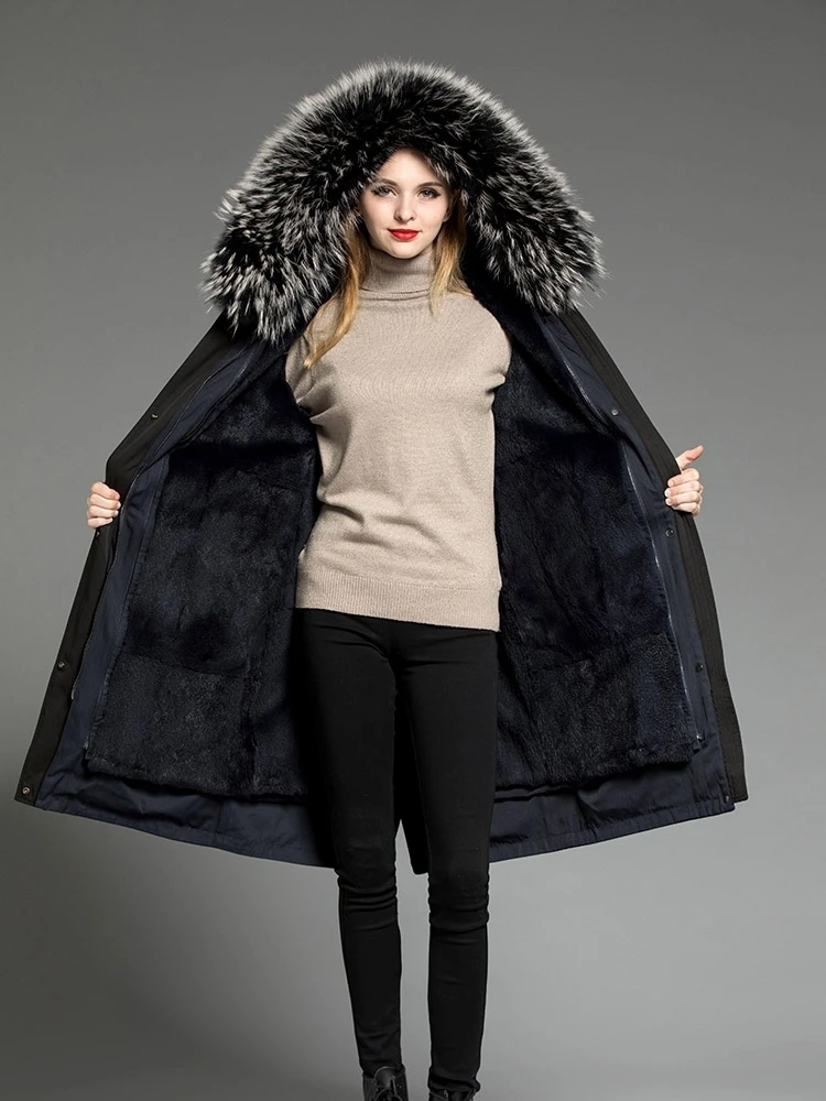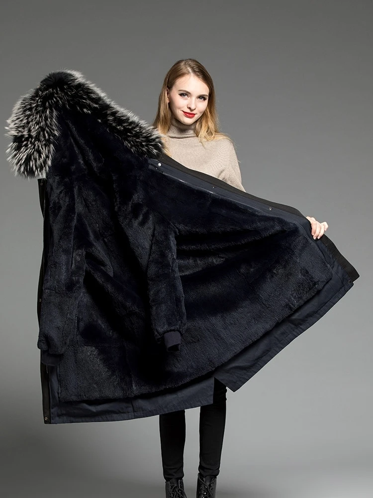 Product Name: Echt Parka Natürliche Kaninchen Liner Langen Graben Mantel 2020 Winter Jacke Frauen Waschbären Pelz Kragen Luxus Parkas MEIN