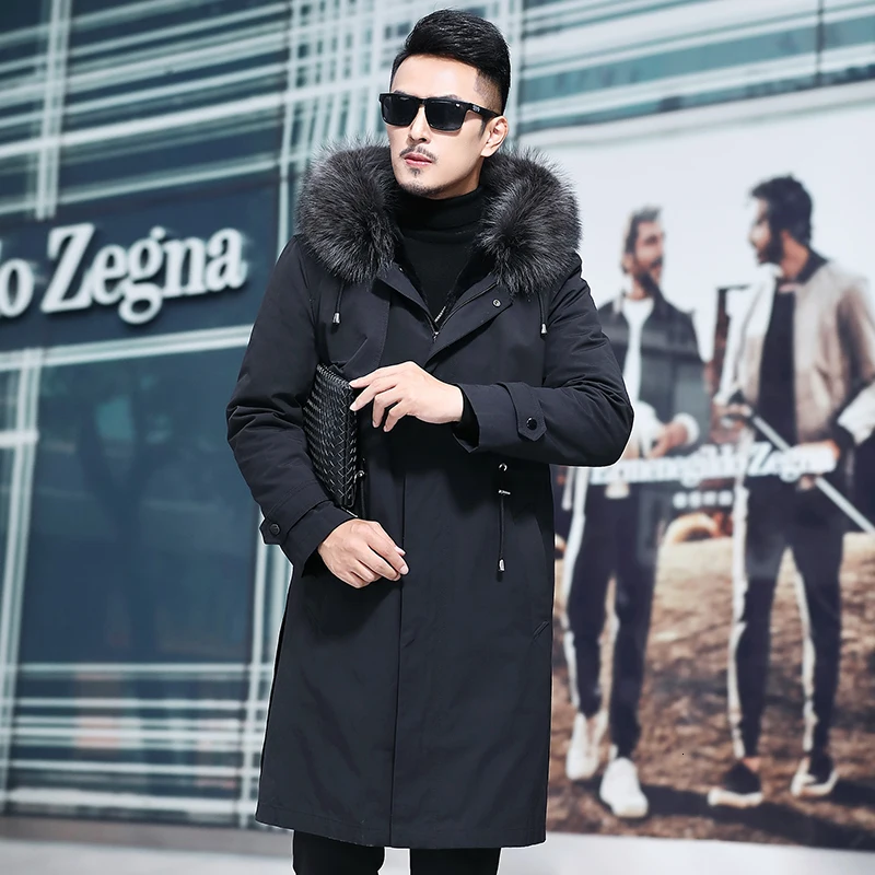Product Name: Herren Parka Echtpelz Mantel Lange Winter Jacke Männer Große Waschbären Pelz Kragen Natürliche Kaninchen Pelz Liner Parkas Mann C29A717271