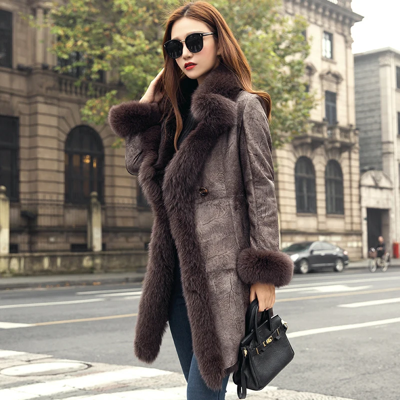 Product Name: Konfrontiert Doppel Echten Pelzmantel Weibliche Luxus Natürliche Kaninchen Fell Mantel Winter Jacke Frauen Fuchs Pelz Kragen Warme Jacken MY4419 S
