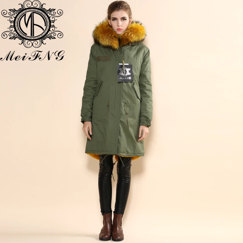 Special Offer 2015 Military Stil Winter Pelz Mantel Mit Kapuze Parka Gelb Futter Fell Kapuze Parka Discount 0% Today!