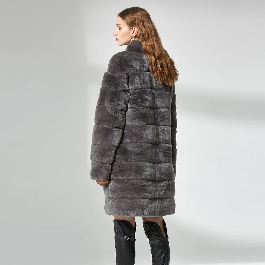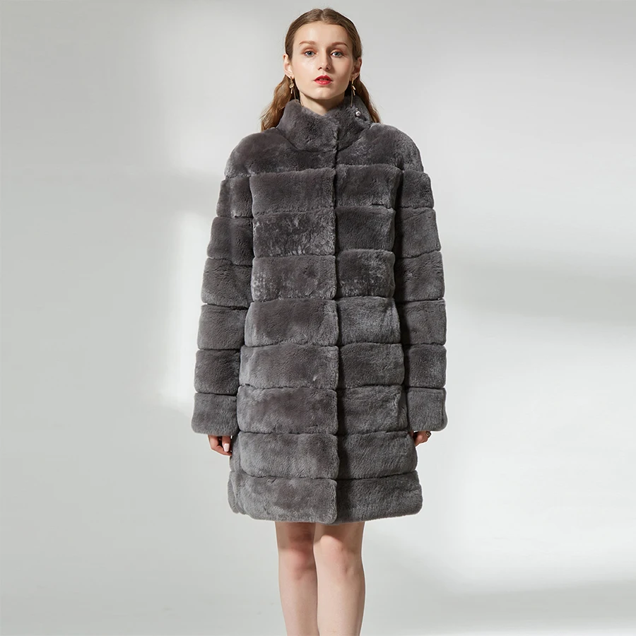 Product Name: Rex Kaninchen Pelz Mäntel Für Frauen Hohe Qualität Mit Stehkragen Echt Pelzmantel Natürliche Rex Kaninchen Fell Mantel Jacke
