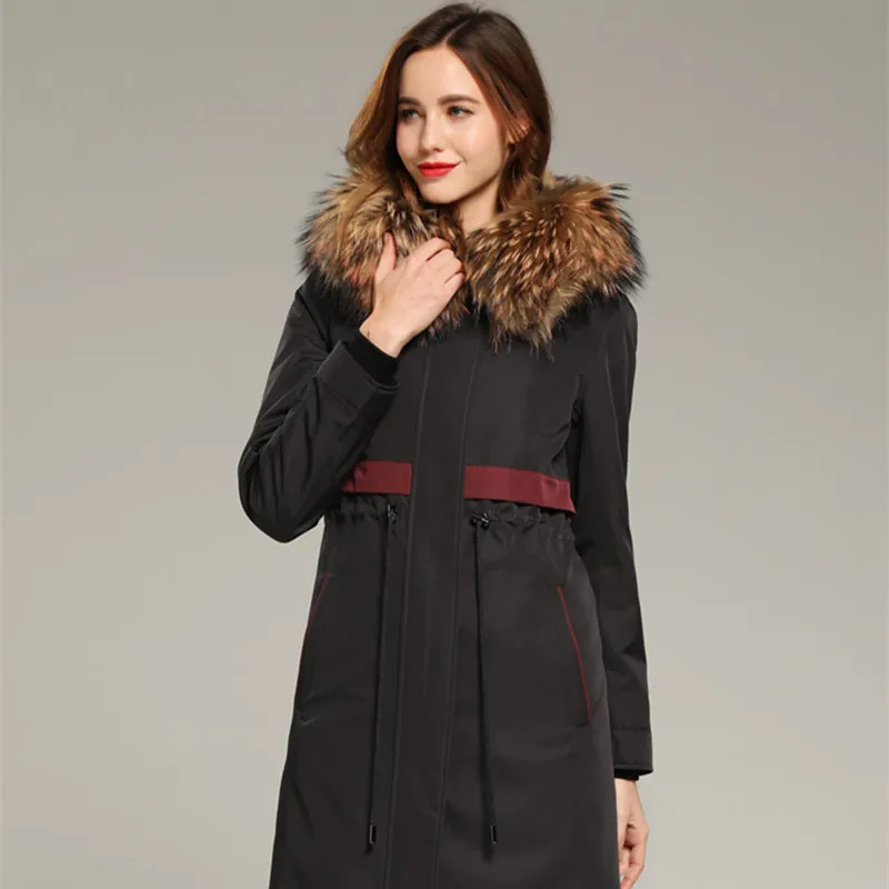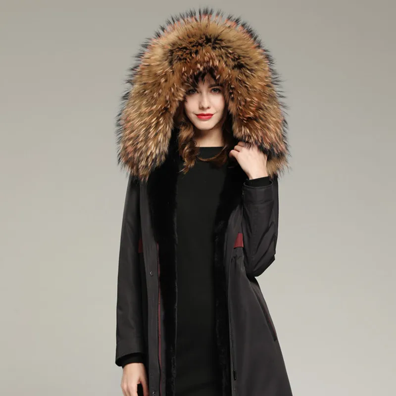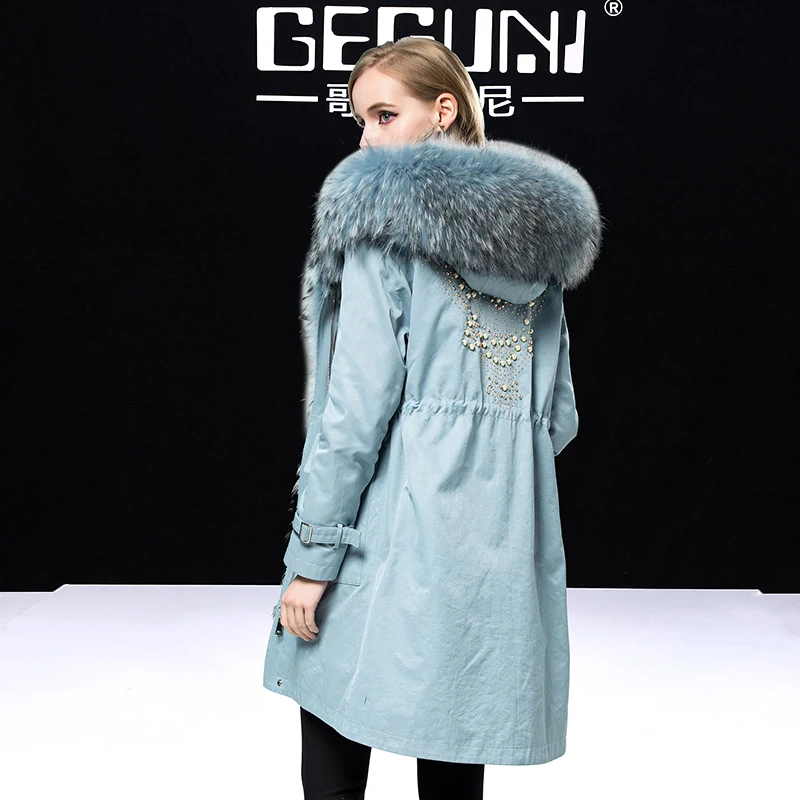 Product Name: Mantel Frauen Oberbekleidung Echt Rex Kaninchen Pelz Jacke NatĂŒrliche Winter Mode Pelz Outwear 80 Cm Lange