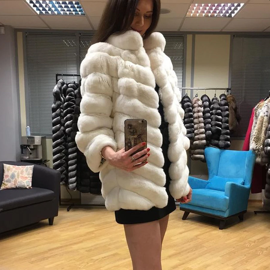 Special Offer Mantel Frauen Oberbekleidung Echt Rex Kaninchen Pelz Jacke NatĂŒrliche Winter Mode Pelz Outwear 80 Cm Lange Discount 0% Today!