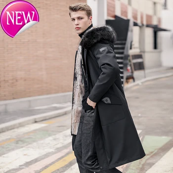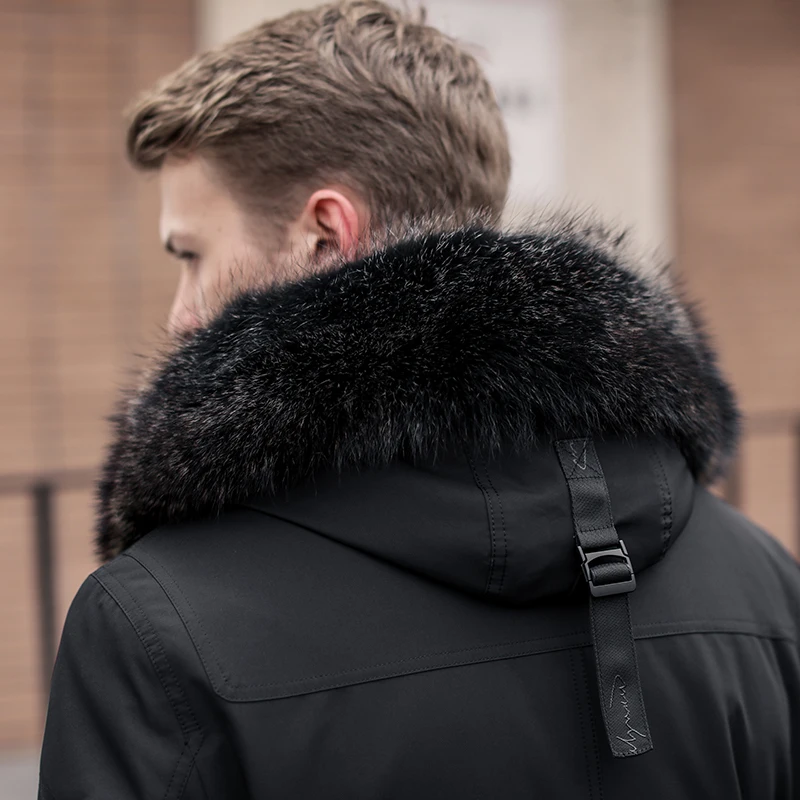 Product Name: Mann Der Winter Parka, Mantel, Echt Kaninchen Und Gans Mantel, Umhang, Waschbären Haut Hals, Warme Pax