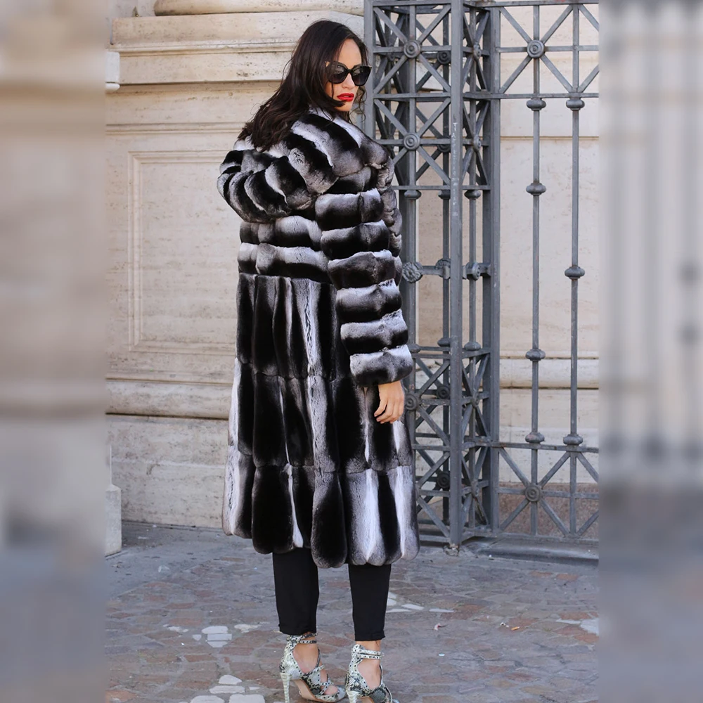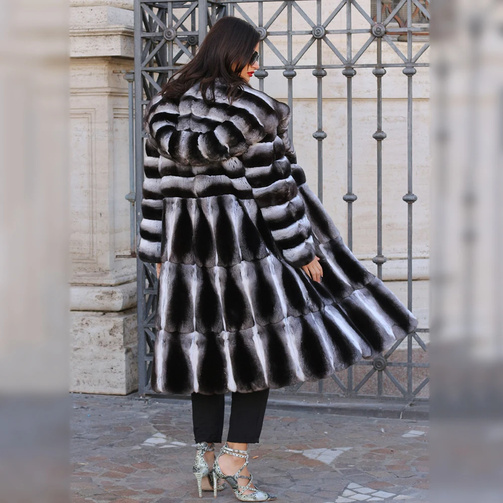 Product Name: 100cm Lange Frauen Echt Rex Kaninchen Pelz Mäntel Mit Kapuze Starke Warme Ganze Haut Aus Echtem Kaninchen Fell Mantel Weibliche Mode Mäntel