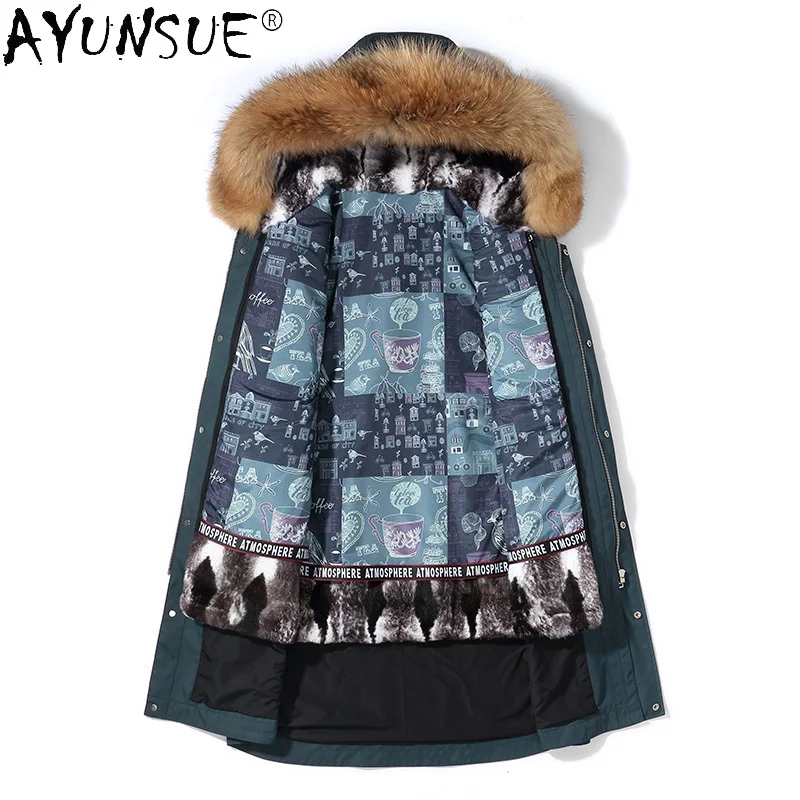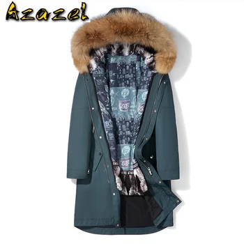 Product Name: Azazel Mit Kapuze Pelz Parka Mann Jacke Echt Waschbären Pelz Kragen Jacken Für Männer Rex Kaninchen Pelz Liner Winter Kleidung Erkekler LXR963