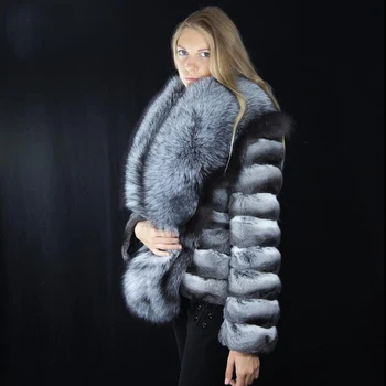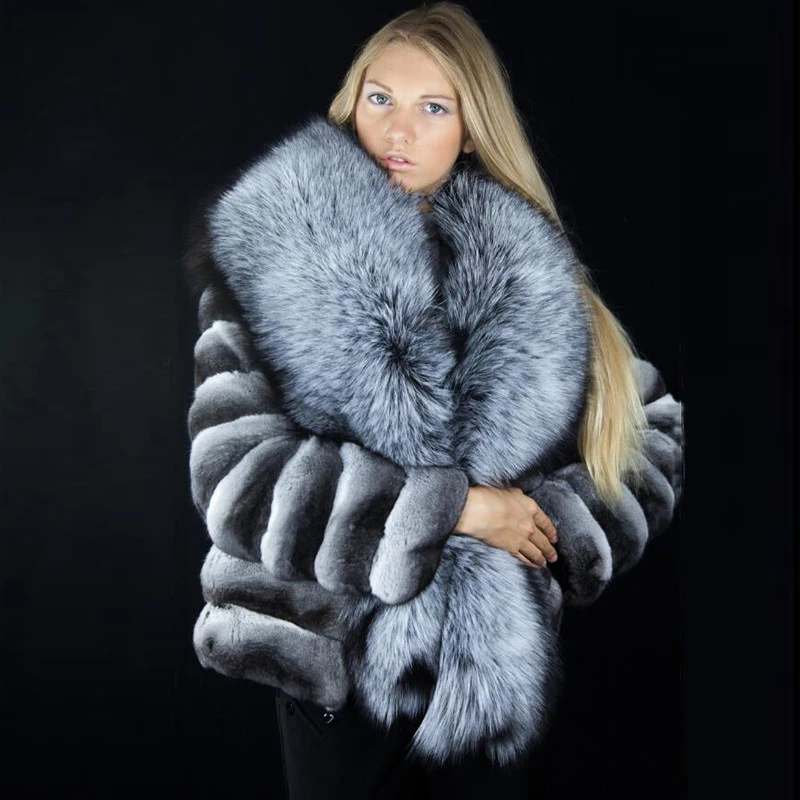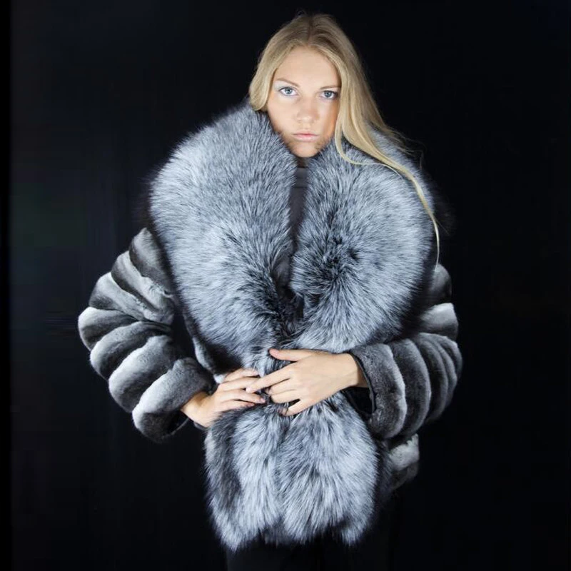 Product Name: FURSARCAR Mode Frauen Natürliche Rex Kaninchen Fell Mantel Mit Big Silber Fuchs Pelz Kragen Winter Dicke Warme Weibliche Echtpelz Mantel
