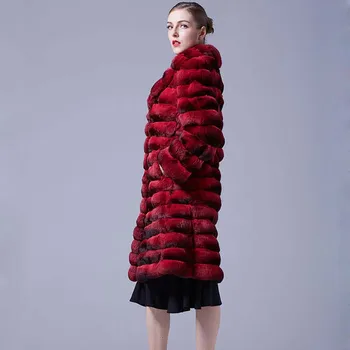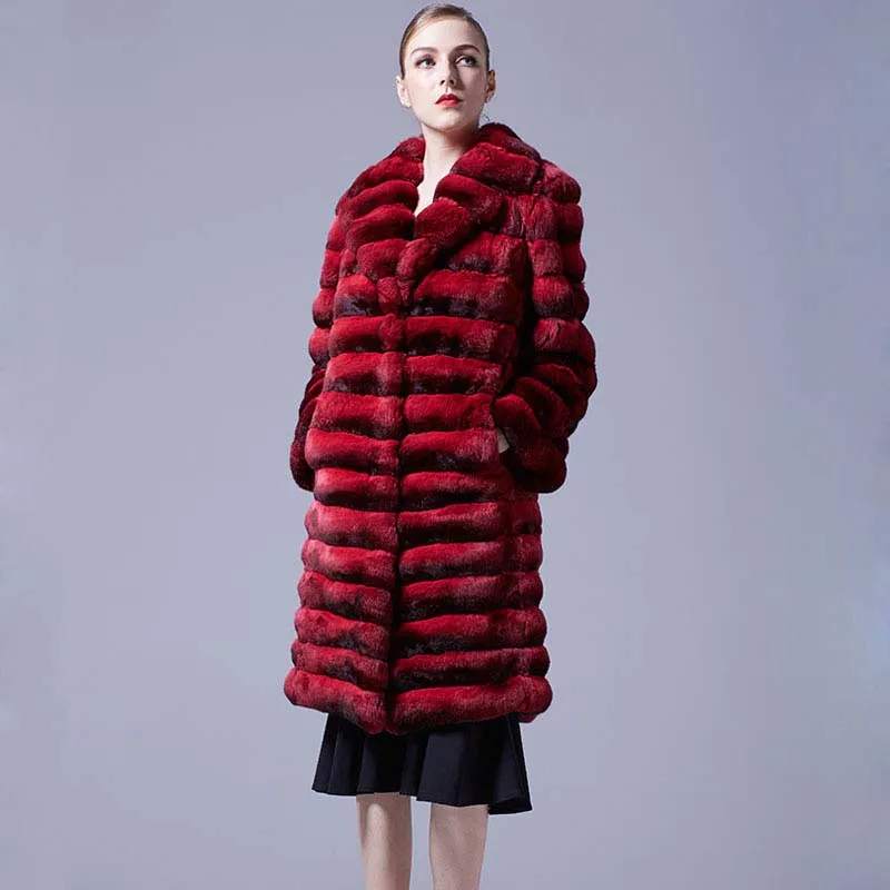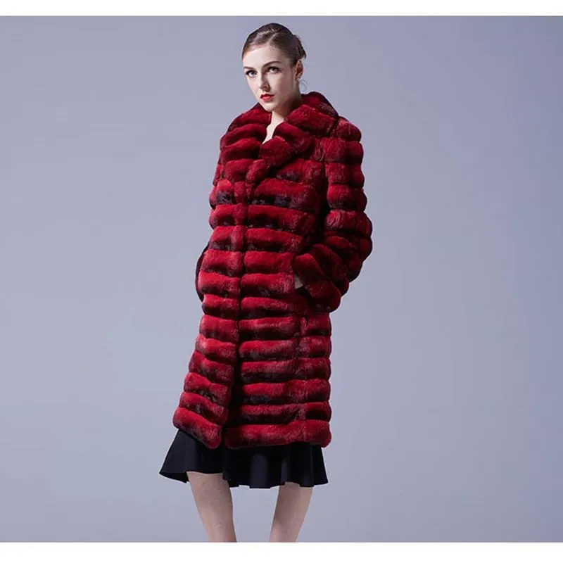 Product Name: FURSARCAR 2020 Neue 100cm Lange Winter Natrual Rex Kaninchen Pelzmantel Für Frauen Chinchilla Jacke Mit Kragen Rot Echt Pelz Outwear