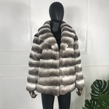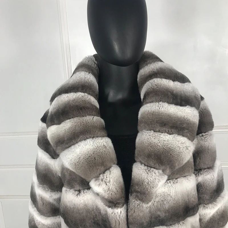 Special Offer Herrliche Fell Mantel Jacke Weibliche Echt Kaninchen Pelz Outwear Drehen Unten Kragen Streifen Hohe-Qualität Discount 50% Today!