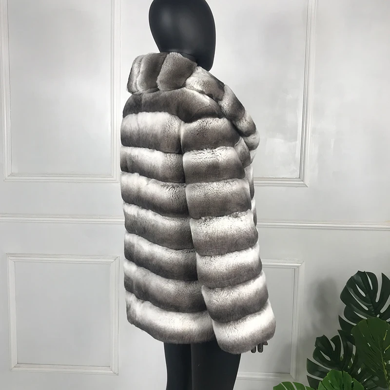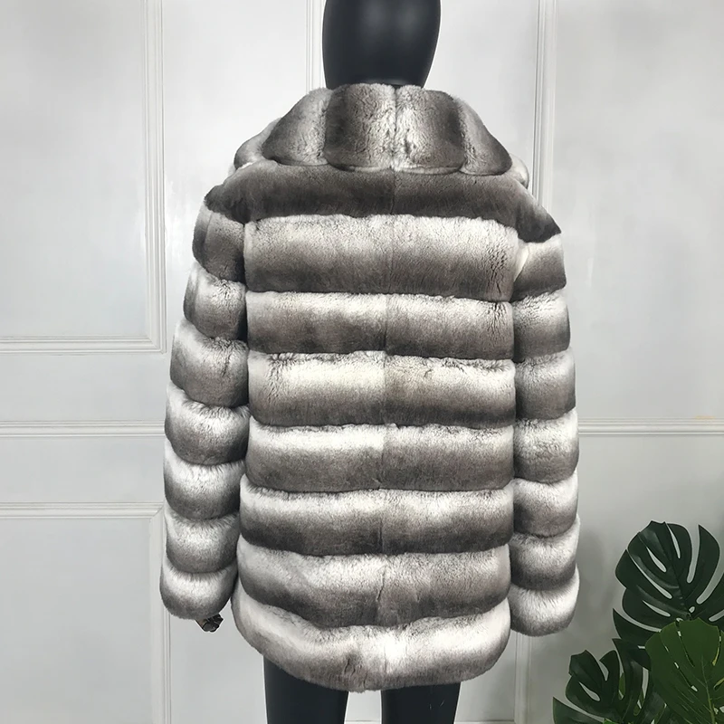Product Name: Herrliche Fell Mantel Jacke Weibliche Echt Kaninchen Pelz Outwear Drehen Unten Kragen Streifen Hohe-Qualität