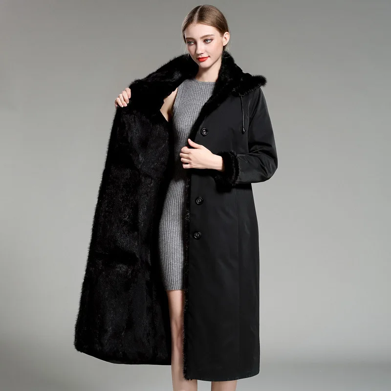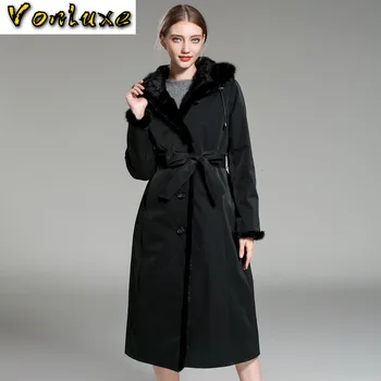 Product Name: Vintage Mit Kapuze Lange Jacke Frauen Natürliche Echt Kaninchen Pelz Innen Mantel Parka Damen Winter Warm Dicken Schnee Outwear Mantel