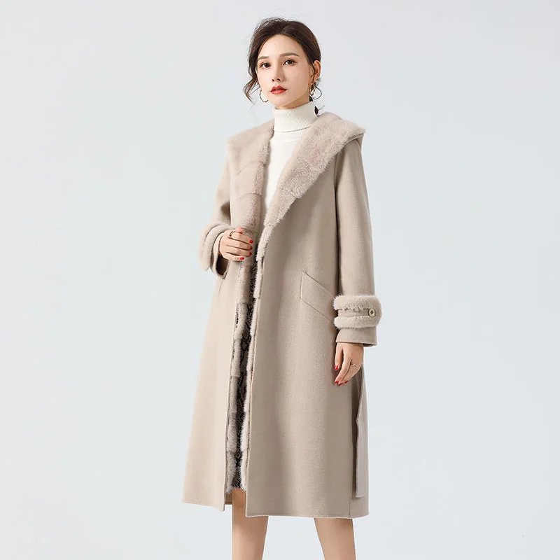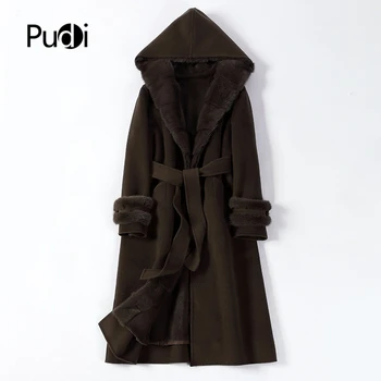 Product Name: Pudi Frauen Winter Echtpelz Mantel Jacke Nerz Pelz Haube Kaninchen Pelz Liner 2020 Ins Heißer Dame Wolle Blends Mäntel Parka Graben Z20179