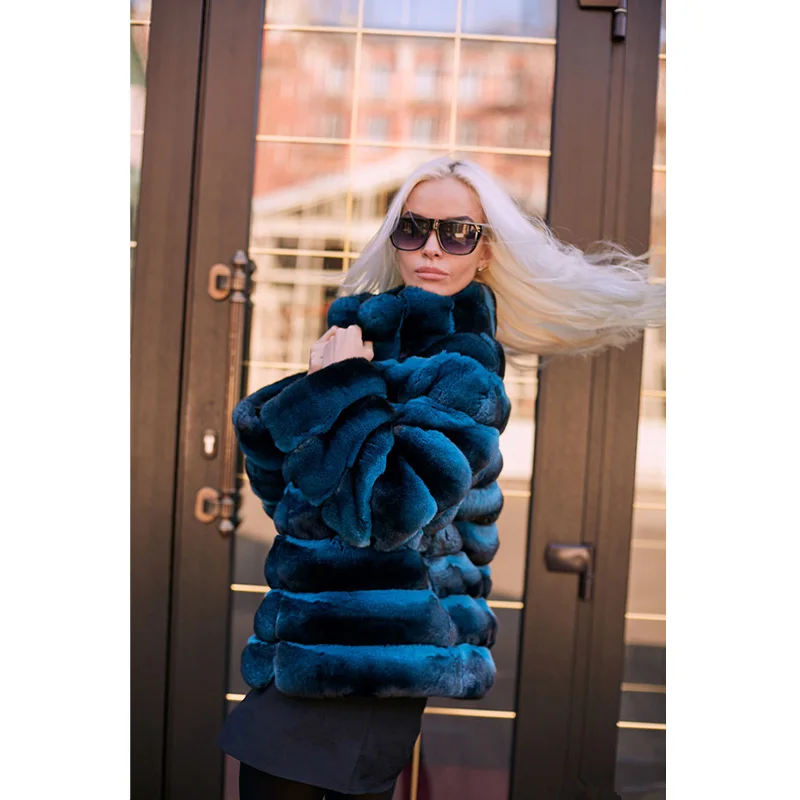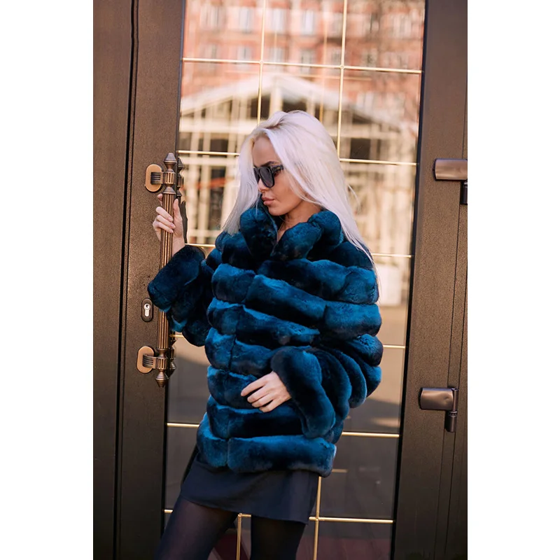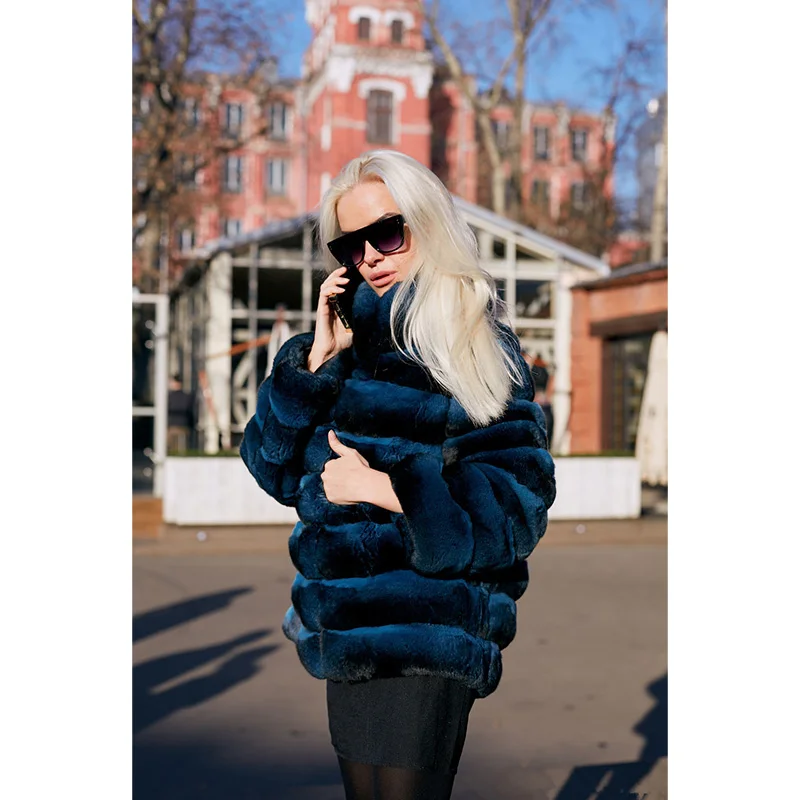 Product Name: FURSARCAR Frauen Winter Echtpelz Mantel Mit Pelz Kragen Luxus Schlanke Natürliche Casual Rex Kaninchen Pelzmantel Echtpelz Jacke