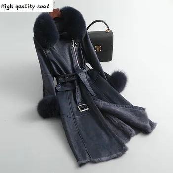 Special Offer Kaninchen Winter Lange Natürliche Weibliche Liner Leder Jacke Frauen Doppel Konfrontiert Top Vintage Echtpelz Mantel Gürtel Hiver 1020 Discount 30% Today!