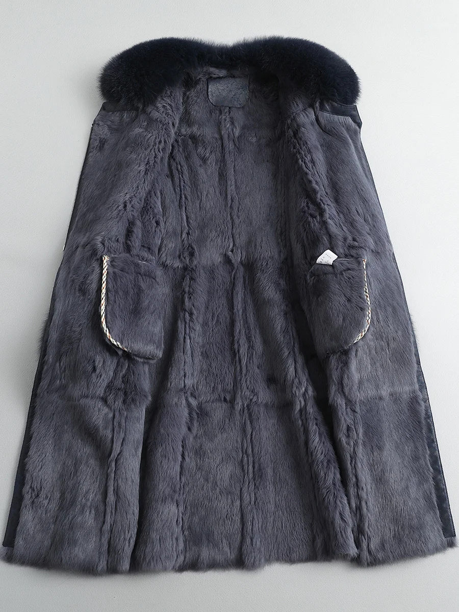 Product Name: Kaninchen Winter Lange Natürliche Weibliche Liner Leder Jacke Frauen Doppel Konfrontiert Top Vintage Echtpelz Mantel Gürtel Hiver 1020