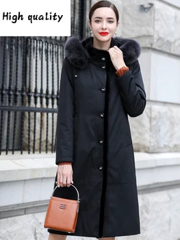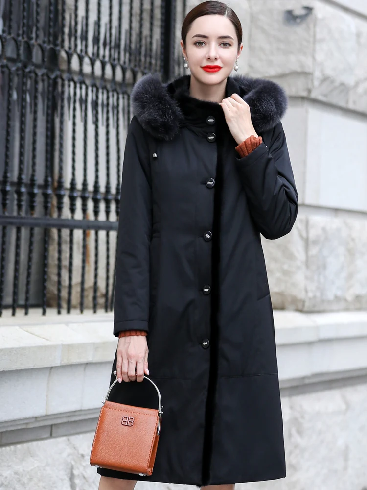 Product Name: Liner Kaninchen Natürliche Parka Fuchs Nerz Pelz Kragen Lange Jacken Winter Jacke Frauen Warme Mantel Plus Größe MY3255