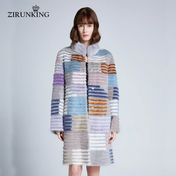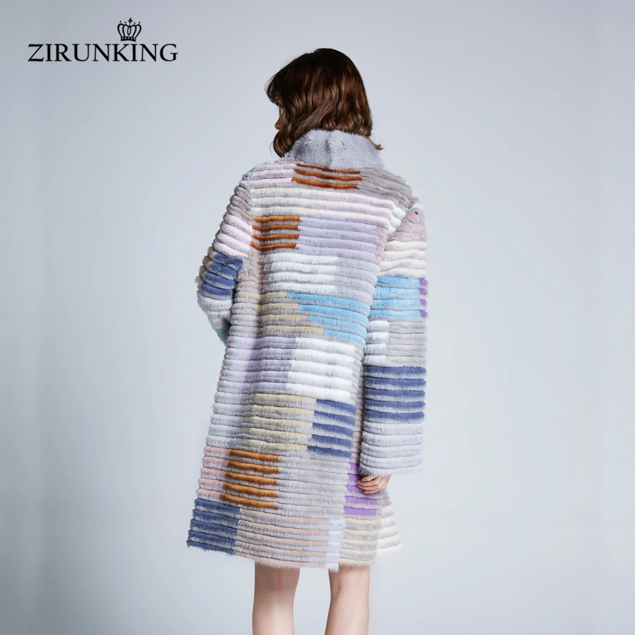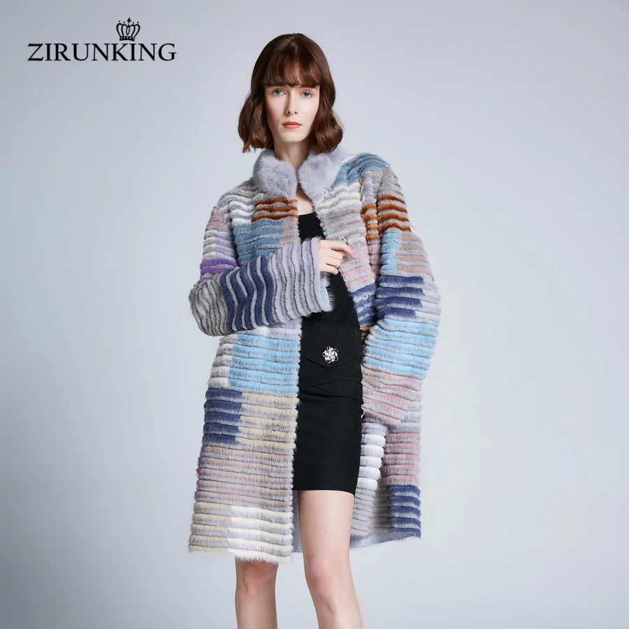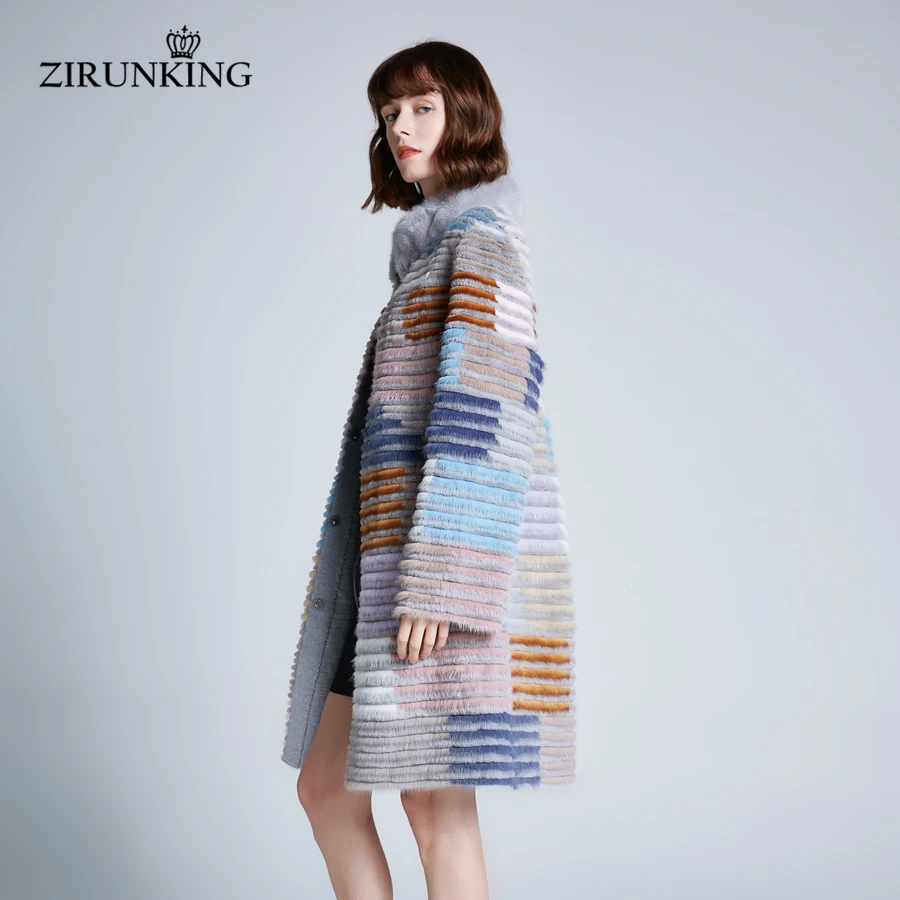 Product Name: ZIRUNKING Frauen Real Nerz Mantel Streifen Genäht Dame Bunte Luxus Lange Kleidung Stehen Kragen Für Herbst Oberbekleidung ZC1906