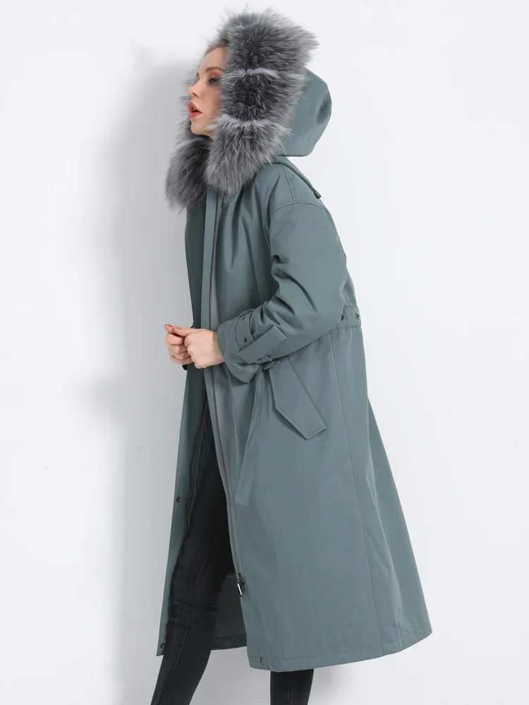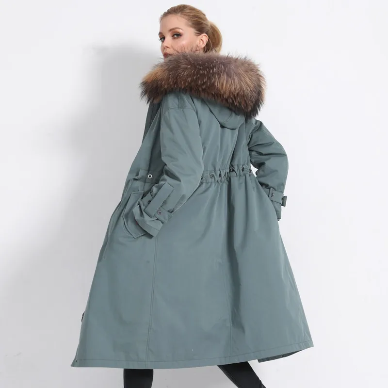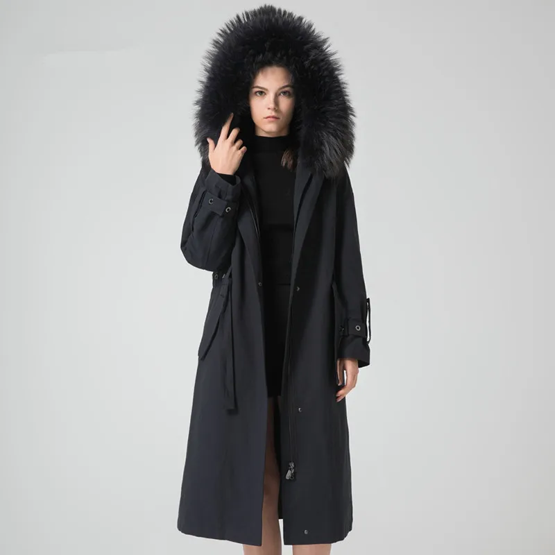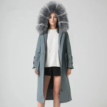 Product Name: 2019 Winter Jacke Frauen Waschbären Pelz Kragen Mantel Parka Echten Pelzmantel Weibliche Natürliche Kaninchen Pelz Liner Lange Mäntel A264