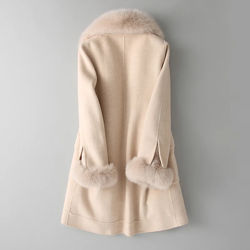 Product Name: AYUNSUE Frauen Pelzmantel Weibliche Kaninchen Pelz Liner Wolle Mantel Winter Jacke Frauen Fuchs Pelz Kragen Woolen MĂ€ntel Warme Parka MY4228