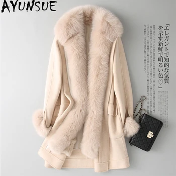 Special Offer AYUNSUE Frauen Pelzmantel Weibliche Kaninchen Pelz Liner Wolle Mantel Winter Jacke Frauen Fuchs Pelz Kragen Woolen MĂ€ntel Warme Parka MY4228 Discount 50% Today!